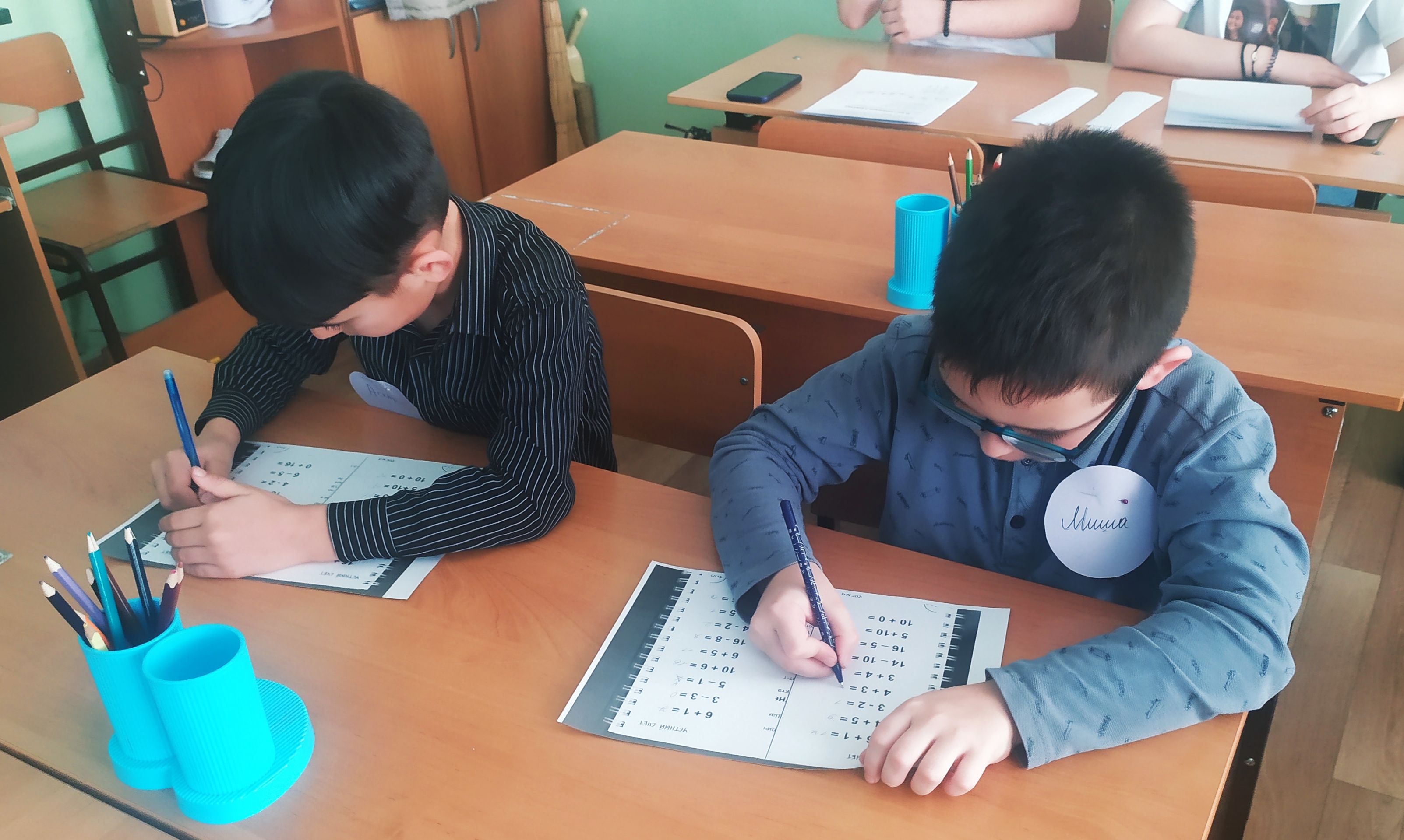 Для разминки участники выполнили упражнения по майнд-фитнесу для концентрации внимания «Орлиный глаз» и «Цвета», подготовленные учителем. Оказалось, что выполнить эти задания не так легко, как показалось первоначально.